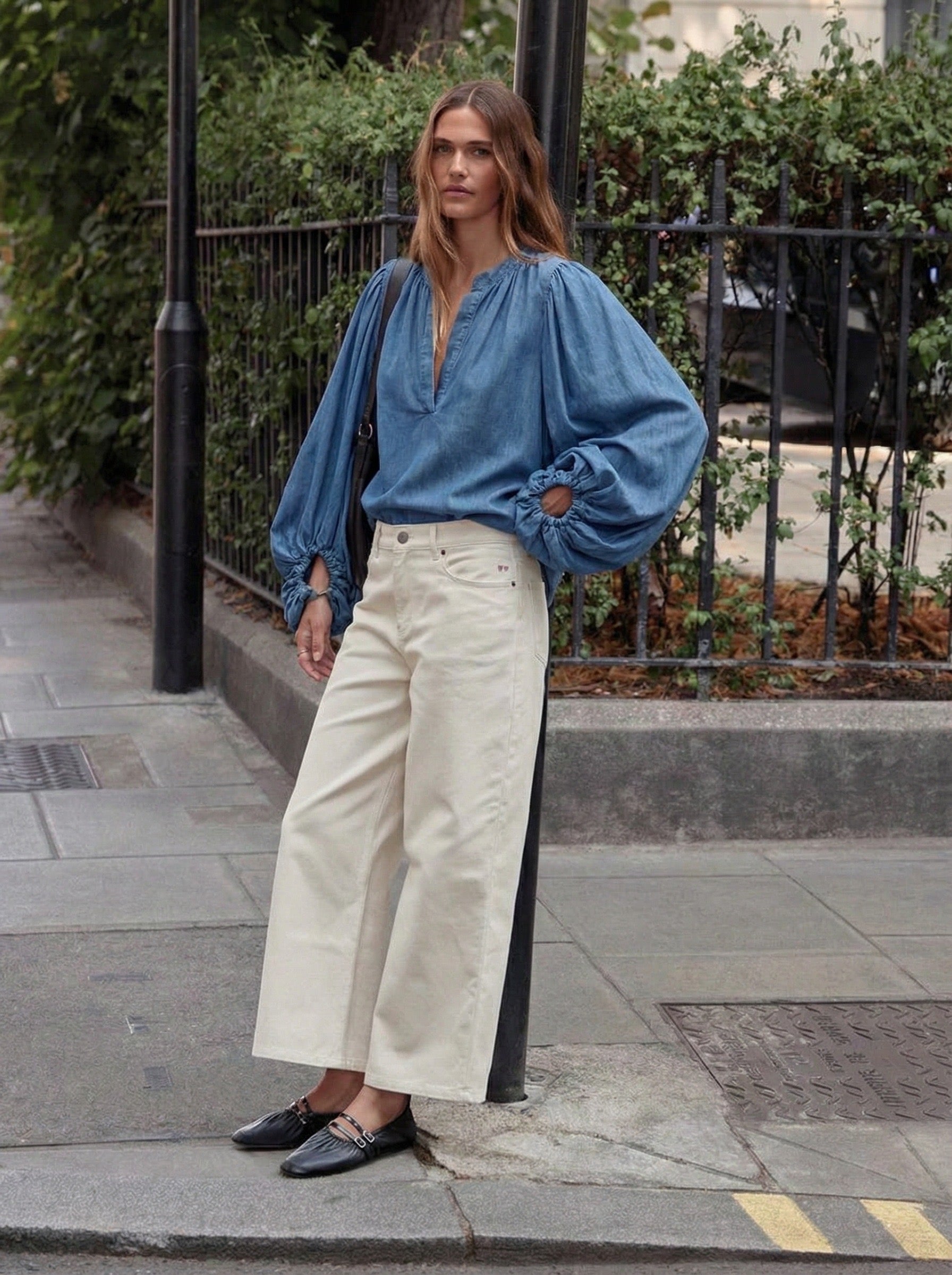 Blusa vaquera manga abullonada