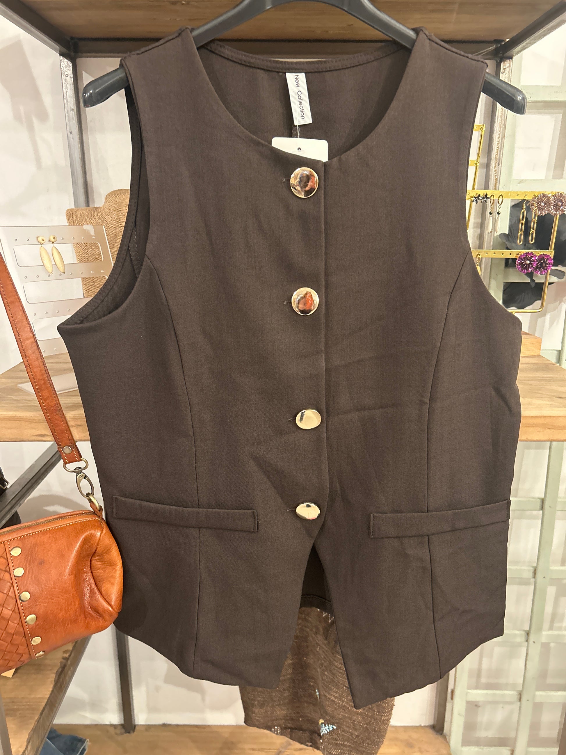 Chaleco chocolate botón